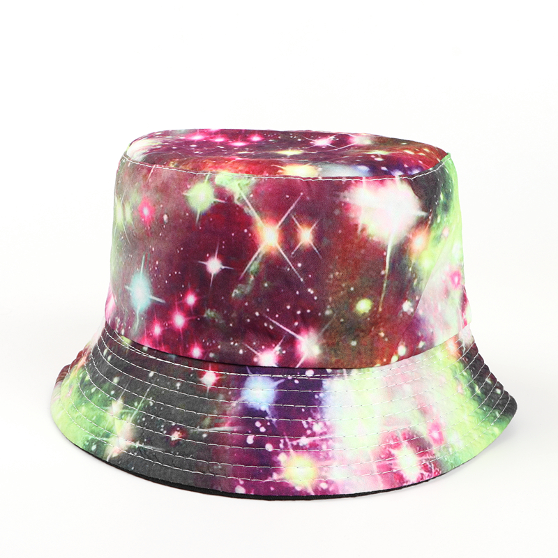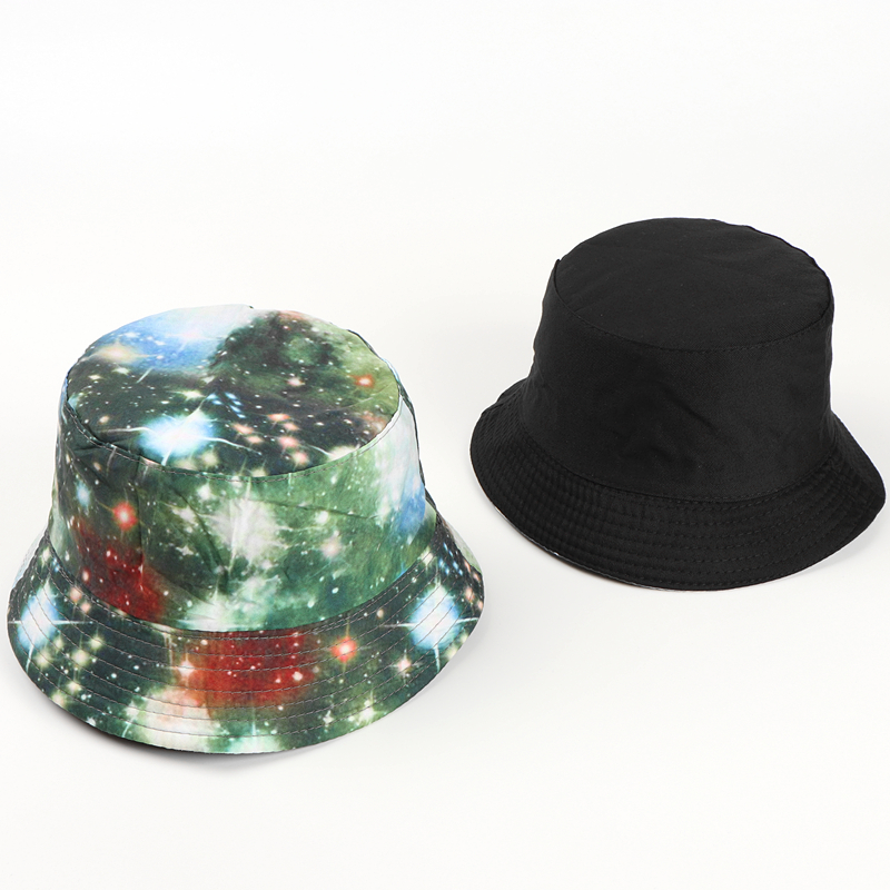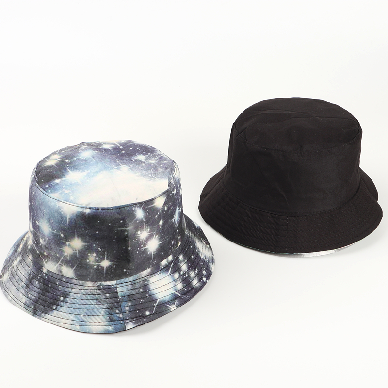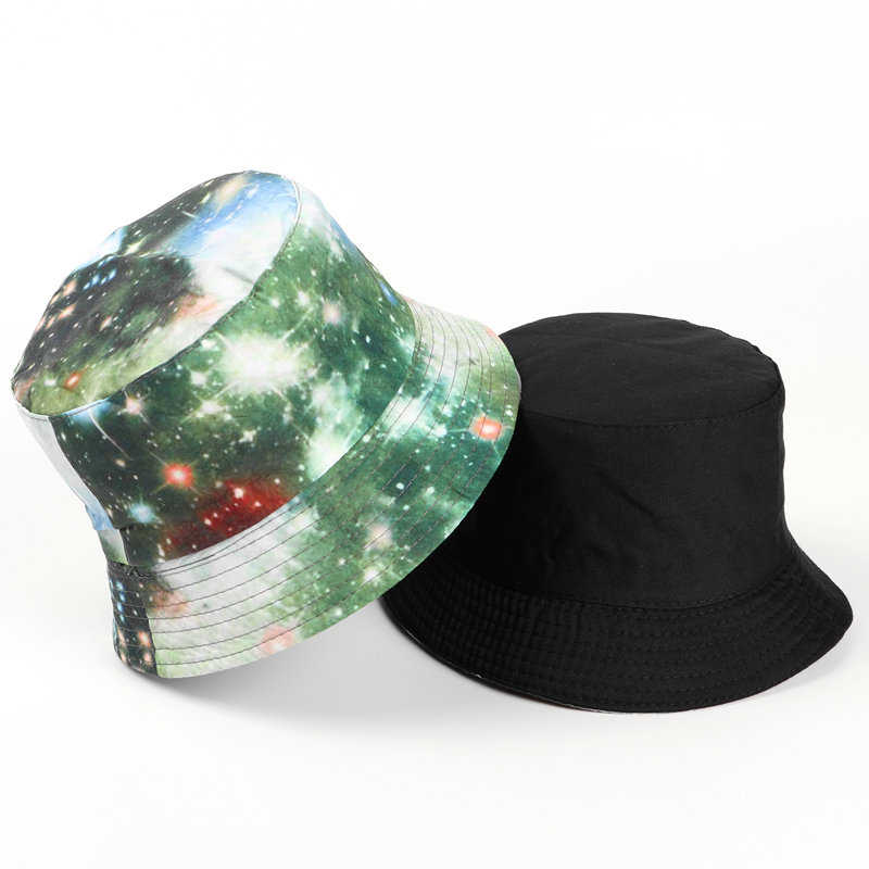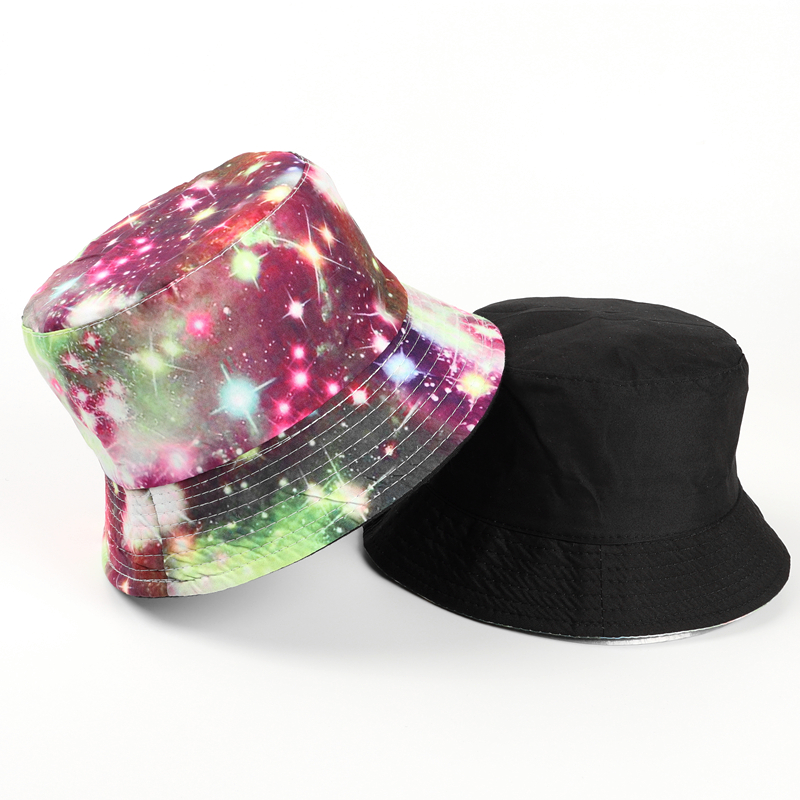 Designed with a practical reversible feature, this bucket hat delivers two distinct looks in one piece: one side boasts the eye-catching galaxy print, while the other side offers a sleek, solid color (customizable to match your brand palette), eliminating the need to carry multiple hats and maximizing versatility for daily wear, travel, or outdoor activities. Unisex in design, ensuring a snug yet comfortable fit for men, women, and young adults alike – a universal appeal that boosts your wholesale sales potential.