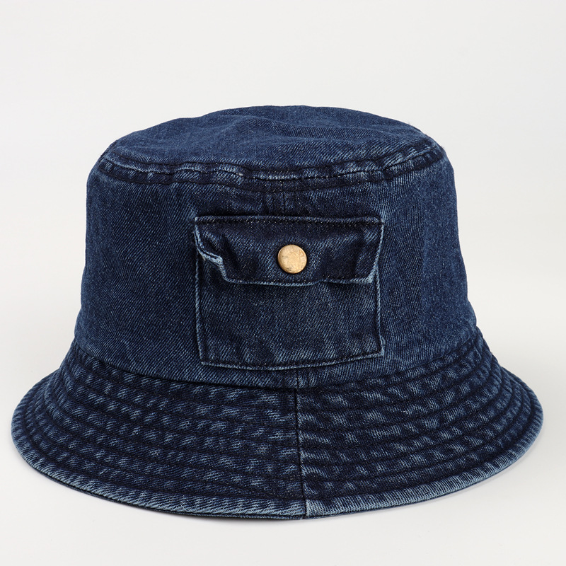 Style: Washed Cotton Jeans Bucket Hat With Pocket