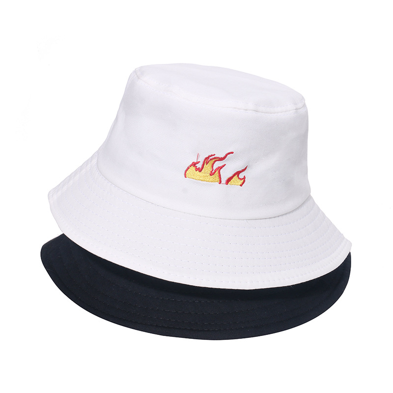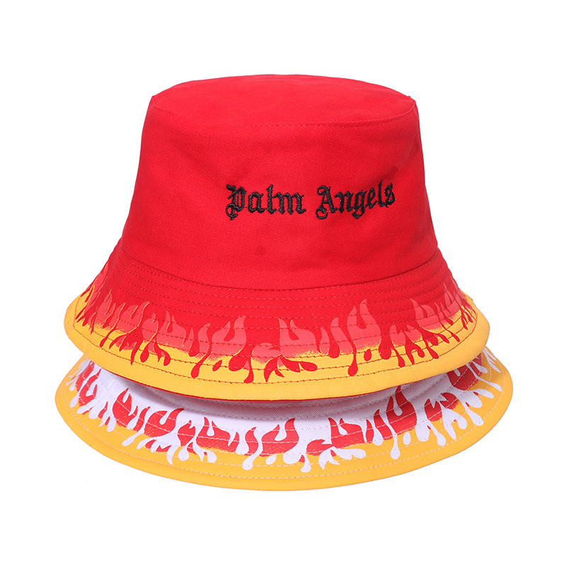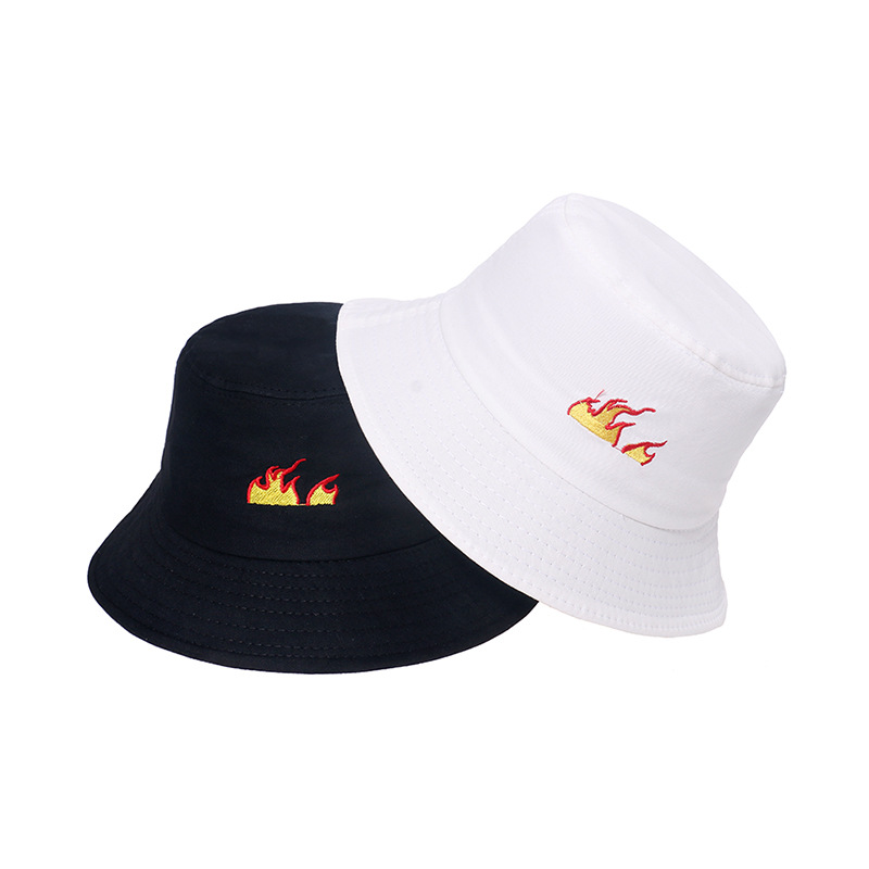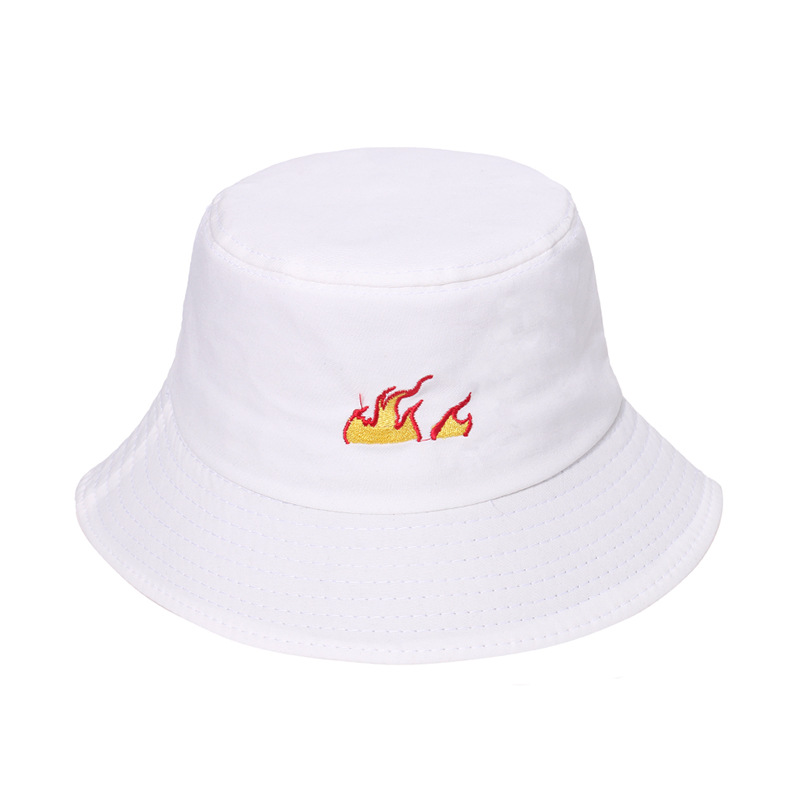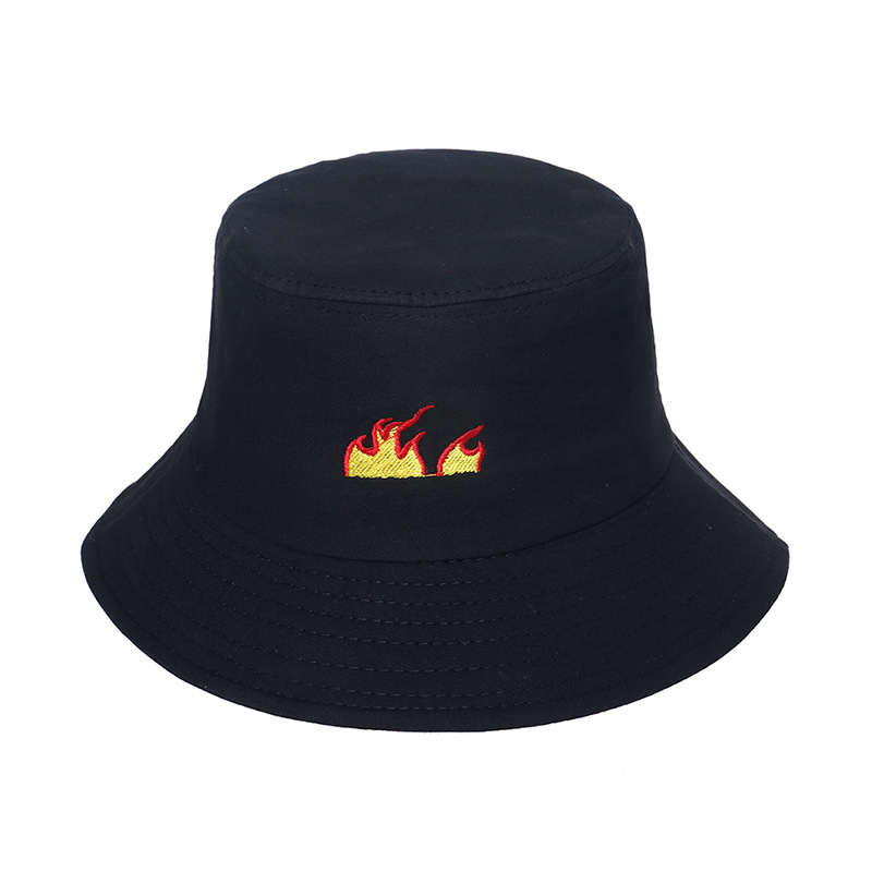 Unisex Flame Print Bucket Hat Streetwear Fashion Cotton Sun Hat Casual Y2K Hip Hop Style Breathable Packable Summer Fisherman Cap